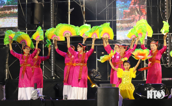 Tiết mục múa hát thể hiện hình ảnh mùa xuân tươi trẻ, nhộn nhịp, rực rỡ sắc xuân.