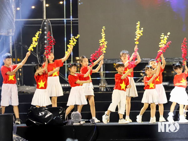 Các em thiếu nhi trong sắc phục màu cờ Tổ quốc tham gia biểu diễn mang lại không khí sôi động tại Chương trình nghệ thuật “Chào năm mới 2025”.
