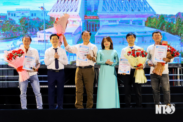 Lãnh đạo Tp.Phan Rang-Tháp Chàm trao giấy chứng nhận cho các tác giả đoạt giải tại Hội thi sáng tác các ca khúc ca ngợi Tp. Phan Rang-Tháp Chàm.