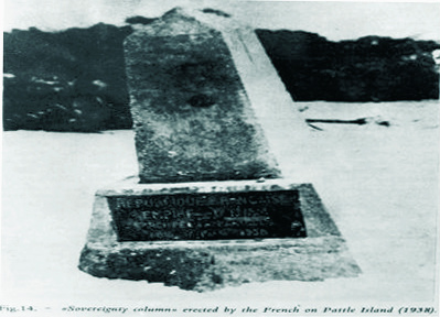 Bia chủ quyền của Việt Nam trên đảo Hoàng Sa, trên bia có khắc dòng chữ tiếng Pháp