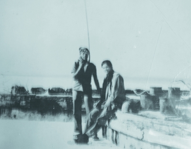 Ảnh chụp 2 người làm việc trên đảo Hoàng Sa.