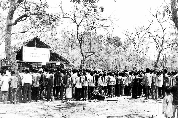 Đồng bào huyện Bác Ái dự lễ mít-tinh trong ngày bầu cử Quốc hội đầu tiên thống nhất đất nước (ngày 25-4-1976).