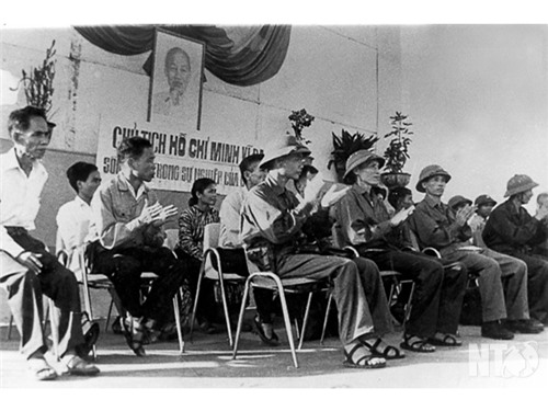 Đồng bào huyện Bác Ái dự lễ mít-tinh trong ngày bầu cử Quốc hội đầu tiên thống nhất đất nước (ngày 25-4-1976).