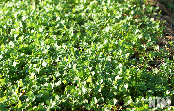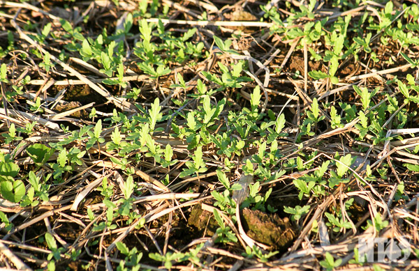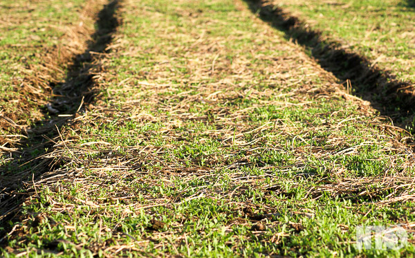 Rơm được phủ lên luống rau mới trồng để ủ ấm.