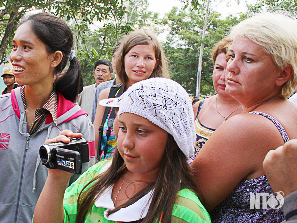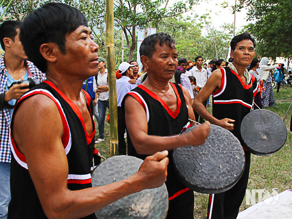 Du khách xem các nghệ nhân xã Phước Đại (Bác Ái) biểu diễn nhạc cụ dân tộc Raglai.