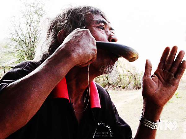 Nghệ nhân Chamaleá Âu, xã Ma Nới (Ninh Sơn) độc tấu nhạc cụ dân tộc Raglai.