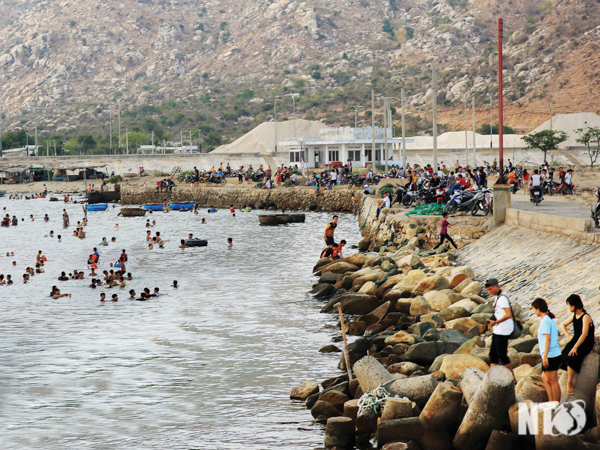 Bãi tắm gần cảng Cà Ná thu hút du khách vào những ngày cuối tuần.