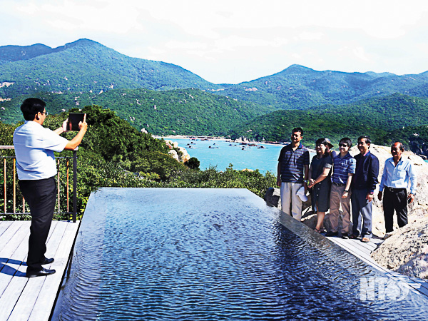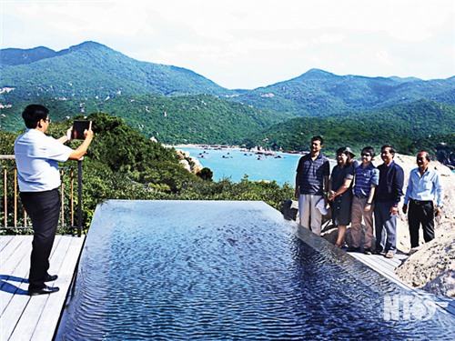 Du khách chụp ảnh lưu niệm tại Khu du lịch nghỉ dưỡng Amanơi.
