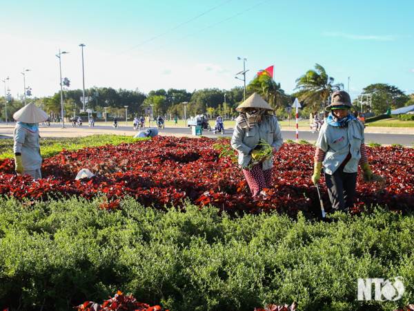 Thời khắc Tết Nguyên đán Canh Tý 2020 đang đến gần. Đội ngũ công nhân các doanh nghiệp tích cực trang trí, sửa sang làm đẹp đường phố, bãi biển Ninh Thuận đón xuân mới thêm xanh- sạch- đẹp.