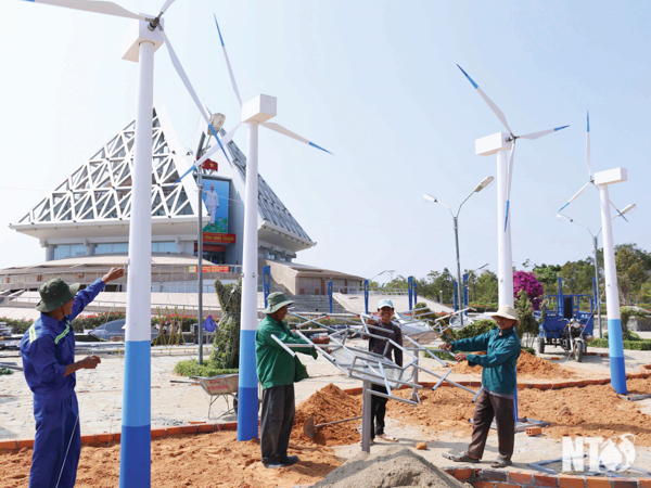 Đón Tết Nguyên đán Canh Tý năm 2020, những ngày này, dọc theo các tuyến đường giao thông từ trung tâm thành phố đến các vùng nông thôn đã dựng những bảng panô, áp phích với khẩu hiệu “Mừng Đảng, mừng Xuân, mừng Đất nước đổi mới” và trên các tuyến phố chính đều treo cờ Đảng, cờ Tổ quốc với muôn sắc màu lộng lẫy….Tại các điểm, khu vui chơi, giải trí, các công nhân tất bật với việc xây dựng, lắp ghép, trang trí hình ảnh về quê hương Ninh Thuận trên đà khởi sắc. PV Báo Ninh Thuận ghi lại những hình ảnh nhộn nhịp, sôi động trên những công trình mừng đón Xuân Canh Tý năm 2020.