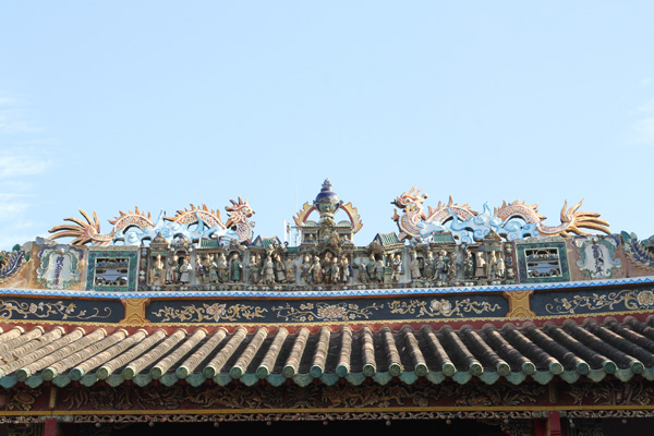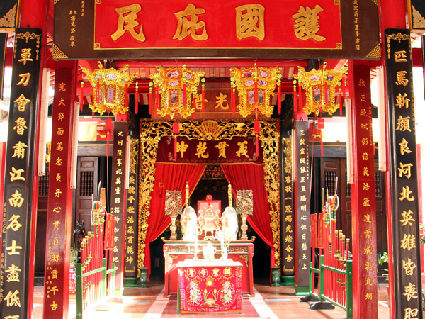Chùa Ông xây cất theo hình chữ Tam gồm có ba gian: Gian thánh điện thờ Quan Công; gian bái đình có khoảng sân rộng cho nhân dân đến cúng bái; gian hội quán làm nơi trao đổi của cộng đồng Hoa kiều. Hệ thống cột cái, đòn dông, vĩ kèo được chạm khắc tinh xảo, phản ảnh đỉnh cao trong nghệ thuật kiến trúc đình chùa vào cuối thế kỷ XIX. Trên nóc chùa được trang trí hình tượng lưỡng long tranh châu; các mái được chạm khắc lân, phụng, hoa lá đường nét sinh động, sắc màu tươi thắm. Chùa Ông còn lưu trữ nhiều vật dụng thờ cúng cổ có giá trị về nghệ thuật đúc đồng, gốm sứ, liễn thờ. Và bốn sắc phong của các đời vua Thiệu Trị, Tự Đức, Đồng Khánh.