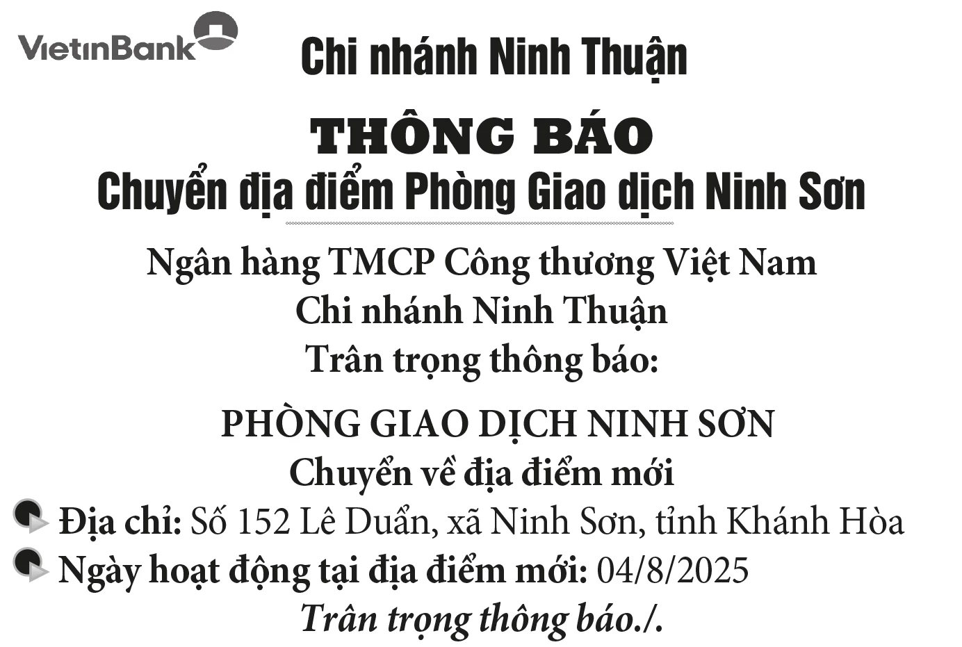 Thông báo chuyển địa điểm Phòng Giao dịch Ninh Sơn