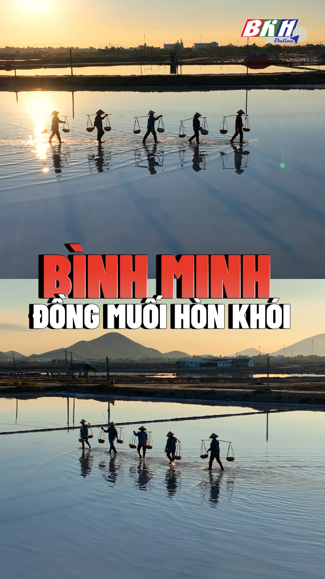 Bình minh rực rỡ trên cánh đồng muối Hòn Khói