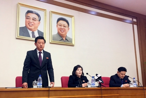 Thứ trưởng Ngoại giao Triều Tiên Choe Son-hui (giữa). Ảnh: AP