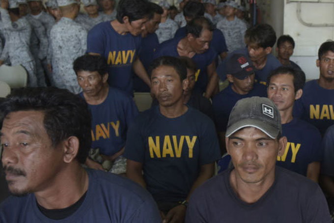 Các thuyền viên Philippines trên con tàu bị đâm chìm (Ảnh: AP)