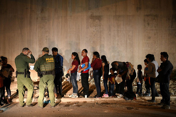 Những gia đình di cư tự tìm tới Lực lượng Tuần tra Biên giới Mỹ để tìm kiếm nơi tỵ nạn sau khi vượt biên bất hợp pháp vào Hidalgo, bang Texas ngày 23/8/2019. Ảnh: Reuters