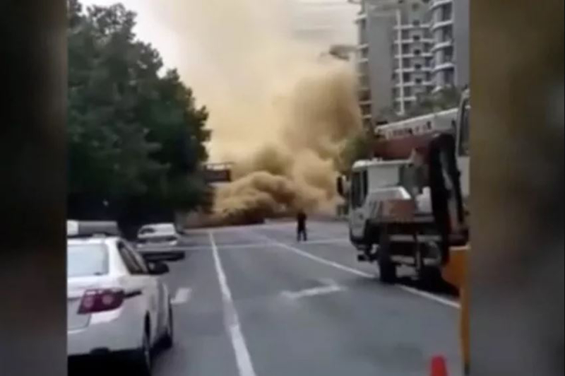 Các đoạn video đăng tải trên mạng xã hội Weibo cho thấy đám khói màu vàng bụi bẩn bao trùm vùng lân cận khi đoạn đường xe chạy sụp dưới mặt đường. Chính quyền cho biết nhà cung cấp khí của TP Hàng Châu đã phải đóng các ống dẫn.