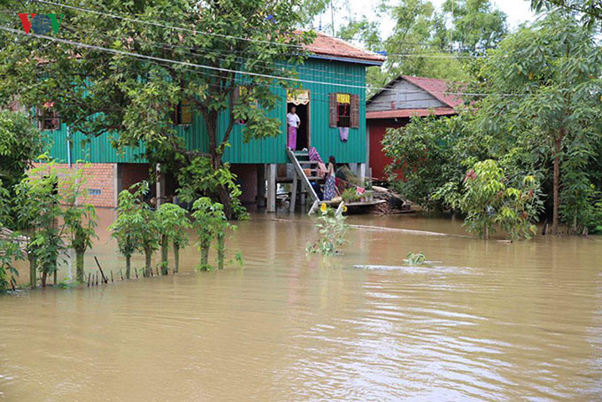 Do ảnh hưởng của mưa bão kéo dài, mực nước sông Mekong tại nhiều địa phương ở Campuchia đã dâng cao gần ngưỡng báo động khẩn cấp.