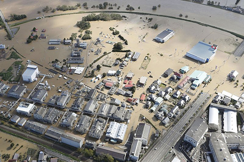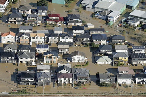 Một số ngôi nhà ở Ashikaga, phía bắc Tokyo, nước ngập tới cả tầng hai. Ảnh: AP