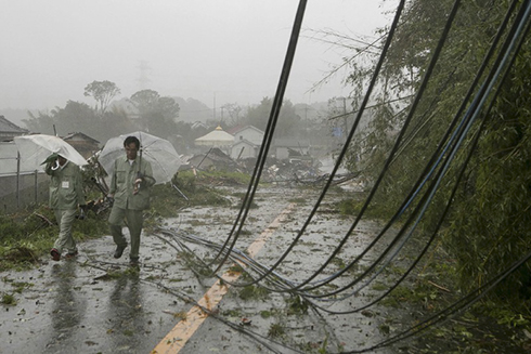 Những cáp dây điện đổ xuống sau khi bị cơn bão tàn phá ở Ichihara, quận Chiba, phía đông Tokyo. Ảnh: Getty