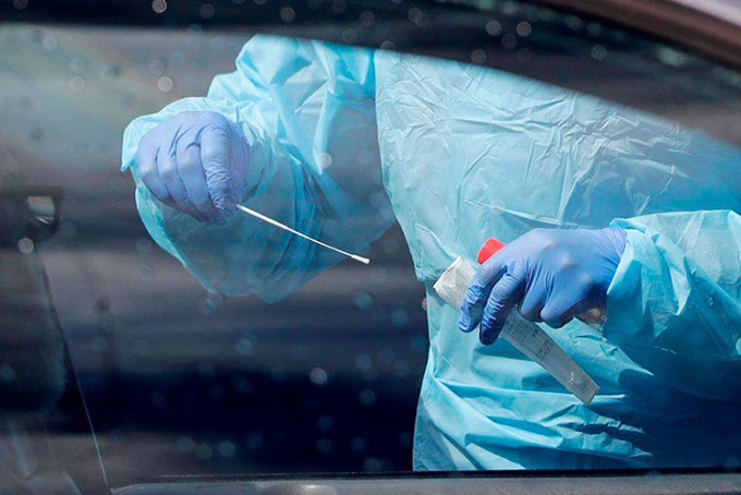 Lấy mẫu xét nghiệm Covid-19 đối với người đi ô tô ở Mỹ. Ảnh: Surrey Leader.