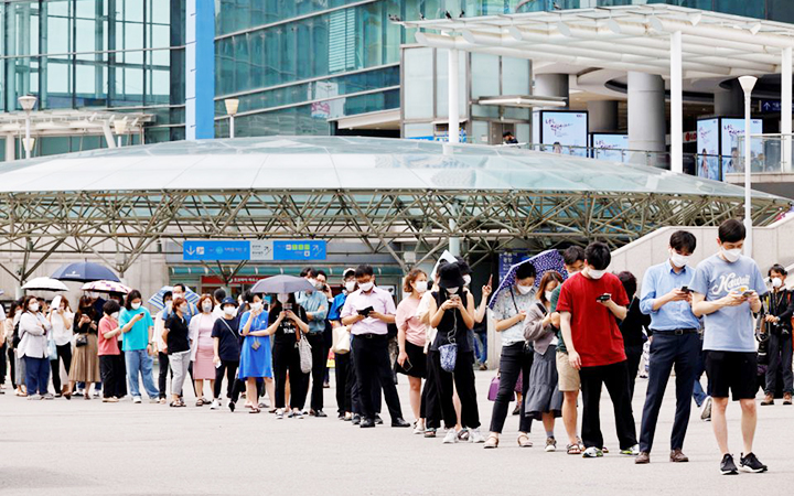 Người dân chờ xét nghiệm Covid-19 tại Seoul, Hàn Quốc. Ảnh: REUTERS