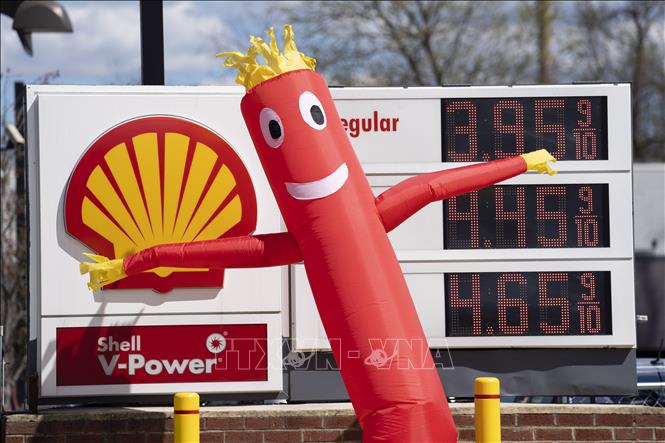 Bảng giá xăng dầu tại một trạm bán xăng ở Arlington, Virginia, Mỹ ngày 12/4/2022. Ảnh: THX/TTXVN