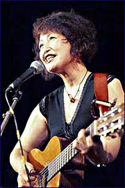 Mối duyên nợ giữa cô với VN đã bắt đầu cách đây khá lâu. Đầu thập niên 1970, cô tham gia nhiều cuộc biểu tình ở Nhật để phản đối cuộc chiến tranh của Mỹ tại VN. Năm 1973, lần đầu tiên cô đến miền Bắc VN để chứng kiến sự tàn phá của chiến tranh. Những hình ảnh đầy đau thương tại bệnh viện Bạch Mai, Hà Nội, không bao giờ phai nhạt trong tâm trí của nữ nghệ sĩ đa cảm này. Cũng trong chuyến đi, cô đến thăm một đơn vị bộ đội ở tỉnh Quảng Bình và dùng lời ca để nâng cao tinh thần của các chiến sĩ, ngợi ca hòa bình với bài hát "Chiếc xe tăng, hãy ngừng lại!".