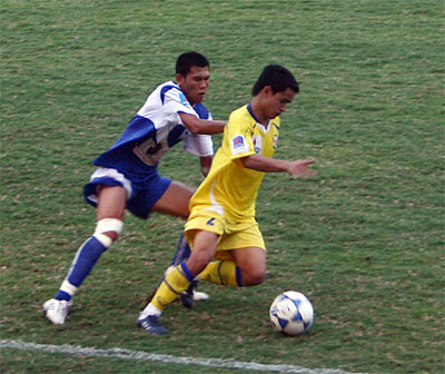 | Các cầu thủ LS.TH (áo vàng) đã chơi một trận cầu tiêu cực. |