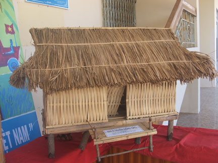 | Nhà ở truyền thống của dân tộc Raglai triển lãm trong ngày hội. |