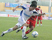 | Tấn Tài (áo trắng) ghi bàn thắng quyết định cho K.KH (Ảnh minh họa) |