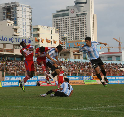 | Có được nhiều lợi thế, song các cầu thủ Khatoco Khánh Hòa đã không biết tận dụng và tự đánh mất chiến thắng của mình. |