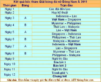 Theo kết quả bốc thăm, 8 đội tham dự trong khu vực sẽ được chia thành 2 bảng A và B. Đội tuyển nữ Việt Nam sẽ nằm trong bảng A cùng với Indonesia, Singapore và chủ nhà Lào. Bảng B sẽ gồm 4 đội còn lại là Thái Lan,