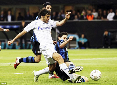 | Raul (trước) góp công vào chiến thắng ngoạn mục của Schanke 04 trước Inter. |