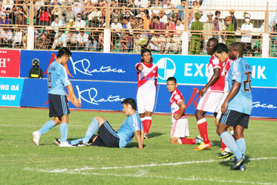 Sớm nhận bàn thua và phải chịu thi đấu thiếu đến 2 người trong phần lớn thời gian của trận đấu, các cầu thủ Khatoco Khánh Hòa (K.KH) đã không thể làm gì hơn ngoài cách buông xuôi trước đội chủ nhà Vicem Hải Phòng (V.HP) ở “chảo lửa” Lạch Tray trong khuôn khổ vòng 6 diễn ra vào chiều 19-2.