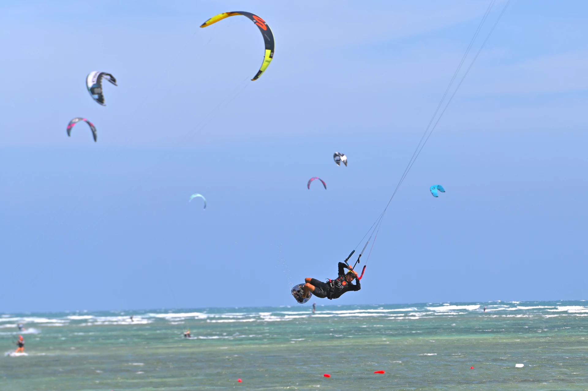 | Một pha bay người trên không trung của vận động viên lướt ván diều thi đấu tại giải. |