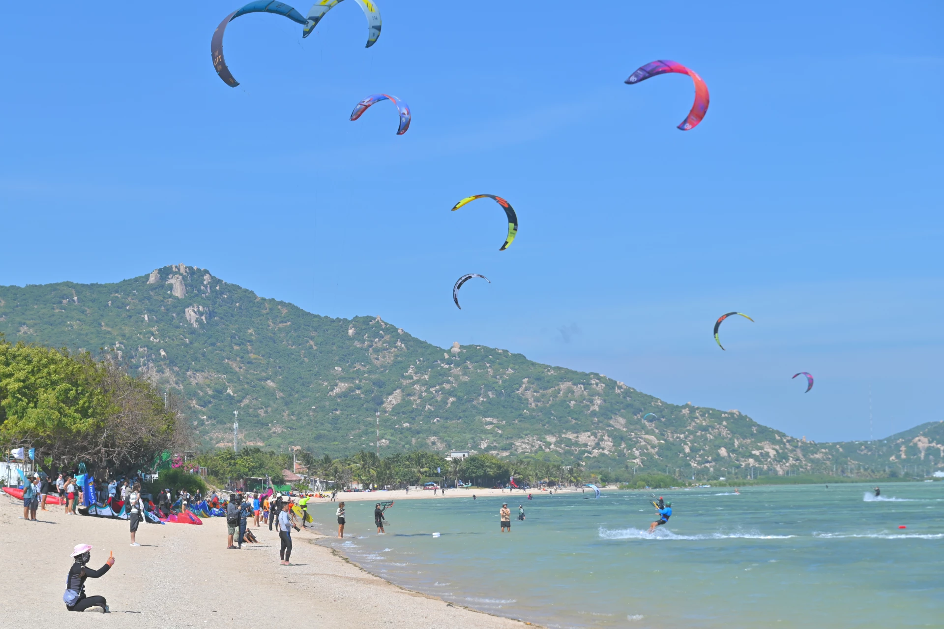 Tại bãi biển thôn Mỹ Hòa, ngay sau lễ khai mạc, hàng trăm chiếc diều đủ màu sắc, căng gió được các VĐV triển khai chuẩn bị cho phần tranh tài, tạo nên bầu không khí thi đấu sôi động, hào hứng và cảnh tượng rất đẹp mắt. Đông đảo người dân và du khách đã đến xem các màn biểu diễn lướt ván diều của các VĐV. Bên cạnh các nội dung chuyên môn, khu vực giải đấu còn tổ chức hoạt động văn hóa, ẩm thực và trưng bày sản phẩm nông sản tiêu biểu của địa phương, góp phần nâng cao trải nghiệm cho VĐV, du khách trong nước, quốc tế. Lần đầu đến Việt Nam và cùng chồng tham gia thi đấu lướt ván diều tại bãi biển Mỹ Hòa, chị Magdalena - du khách đến từ Ba Lan bày tỏ ấn tượng với cảnh đẹp, bầu không khí sôi động của giải. “Thời điểm này trong năm, tôi và chồng thường đi du lịch ở những nơi có bãi biển đẹp, điều kiện tự nhiên thuận lợi như: Ai Cập, Brazil, Dominica... để anh ấy thỏa đam mê với môn lướt ván diều. Đây là lần đầu tiên chúng tôi đến Việt Nam để tham dự giải, thời tiết ở đây rất lý tưởng, gió mạnh, cường độ đều, ổn định, nước ấm, bãi biển cạn phù hợp cho môn lướt ván diều. Các hoạt động bên lề giải đấu cũng rất sôi động, hấp dẫn làm cho chúng tôi cảm thấy rất phấn khích”, chị Magdalena chia sẻ.