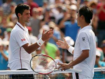Nhưng người Nhật và người Croatia đã phá tan cái dự đoán đó. Đầu tiên là hạt giống số 10 Kei Nishikori làm nên cú sốc lớn khi loại tay vợt hạt giống số 1 của giải Djokovic ở trận bán kết 1. Xem trận đấu này, người ta không nghĩ tay vợt đến từ xứ sở mặt trời mọc có thể làm nên chuyện cho dù Kei Nishikori giành chiến thắng ở séc 1 với tỉ số 6-4. Bởi séc 2 đã kết thúc một cách chóng vánh với tỉ số 6-1 nghiêng về Djokovic. Nhưng đó lại là tất cả những gì mà Djokovic có thể làm được ở trận này khi anh tiếp tục để thua 2 séc nữa, chấp nhận dừng bước ở bán kết với tỉ số chung cuộc 1-3. Một chiến thắng đáng tự hào hơn cho Nishikori khi mở ra cơ hội lớn cho một tay vợt nam người châu Á giành Grand Slam đầu tiên như tay vợt nữ người Trung Quốc Li Na đã làm được tại giải quần vợt Pháp mở rộng cách đây vài mùa.