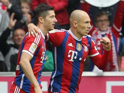 Sự tỏa sáng của cặp đôi Robert Lewandowski - Arjen Robben đã giúp Bayern Munich xây chắc ngôi đầu ở Bundesliga. |