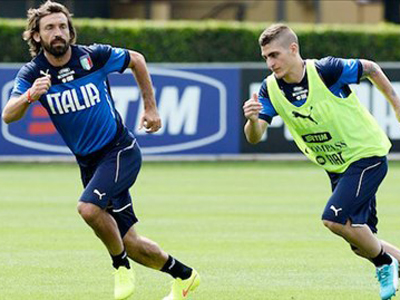 Andrea Pirlo và Marco Verratti (phải), hai thế hệ của đội tuyển Italia. |