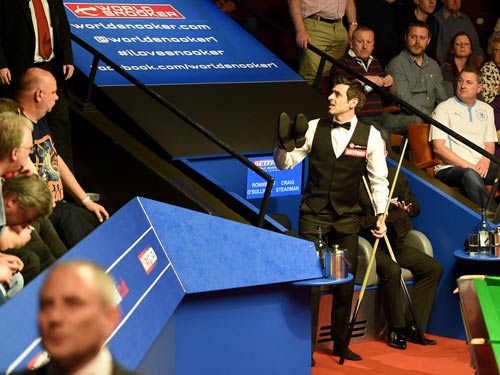 Cảm thấy khó chịu với đôi giày do ban tổ chức cung cấp, huyền thoại snooker người Anh liền cởi giày ra và chỉ đi tất để thi đấu. Trước đối thủ khá mềm Craig Steadman, “The Rocket” có chiến thắng dễ dàng 10-3 để giành tấm vé lọt vào vòng 2 giải snooker thế giới 2015 nhưng anh đang đối mặt với 1 án phạt từ ban tổ chức vì không đi giày thi đấu.