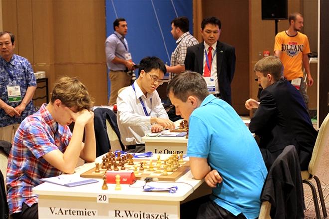 | Lê Quang Liêm giành được trận hòa ở lượt đi vòng 2 World Cup cờ vua 2015. |