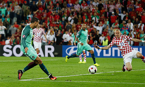 | Đội tuyển Bồ Đào Nha vượt qua đội tuyển Croatia được đánh giá cao hơn trong một trận đấu không có cú sút nào trúng đích trong suốt 90 phút thi đấu. |