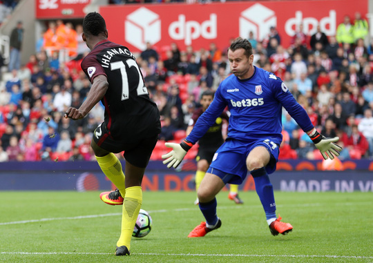 | Tiền đạo Iheanacho kiến tạo một bàn trong trận Man City thắng chủ nhà Stoke 4-1 trên sân Britannia - sân có quảng bá cho thương hiệu Tôn Đông Á Ảnh: REUTERS |