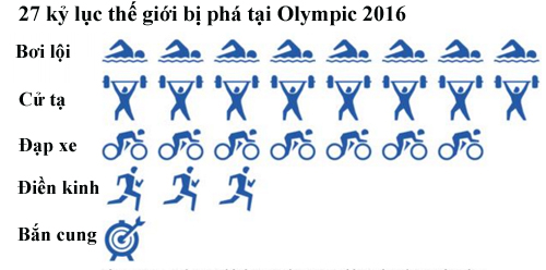 Những kỷ lục thế giới bị phá vỡ. 27 kỷ lục thế giới mới được lập nên tại Olympic 2016 tại năm môn là điền kinh, bắn cung, đua xe đạp, bơi lội và cử tạ.