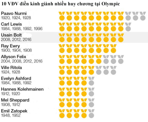 Bolt đã đứng ngang hàng với huyền thoại nhảy xa người Mỹ Carl Lewis và huyền thoại chạy đường dài người Phần Lan Paavo Nurmi trong số những người từng giành nhiều HC vàng Olympic nhất ở môn điền kinh (cùng 9 HC vàng).