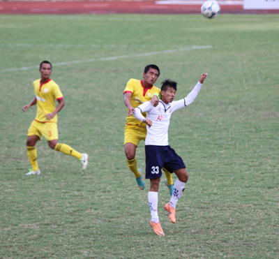 | Cầu thủ 2 đội trong một pha tranh bóng. |