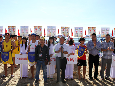 Quang cảnh buổi lễ khai mạc giải bóng ném bãi biển toàn quốc dịp Festival Biển 2013. |