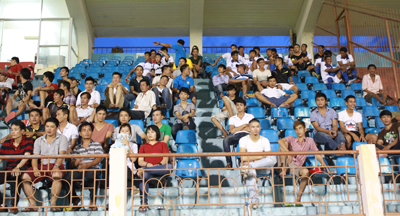 | Đông đảo khán giả đến xem các đội bóng thi đấu trên sân Nha Trang. |