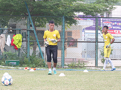 | Thủ môn Ngọc Cường và Thế Kiệt (phải) |